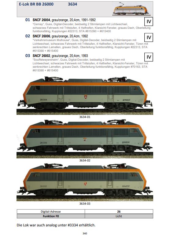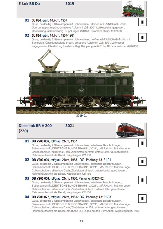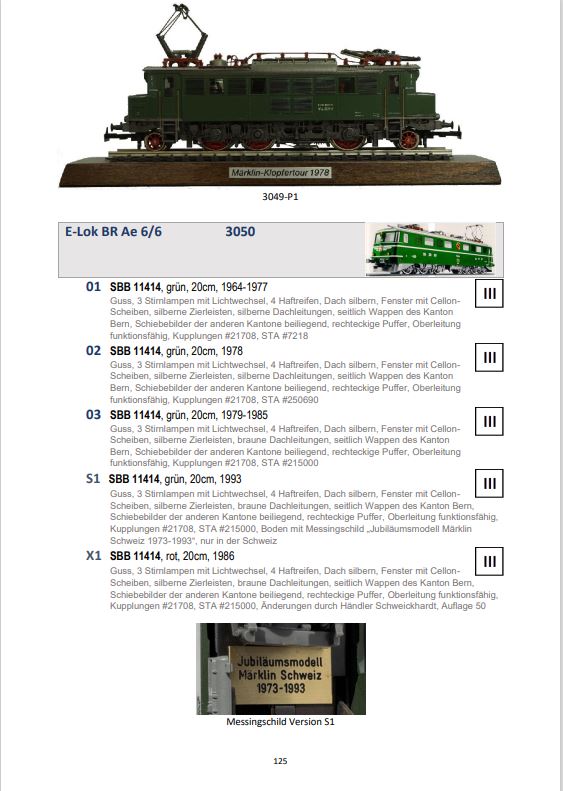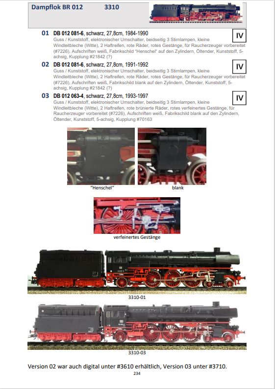 Katalog zeigt die Unterschiede, die während der Produktionszeit die Loks